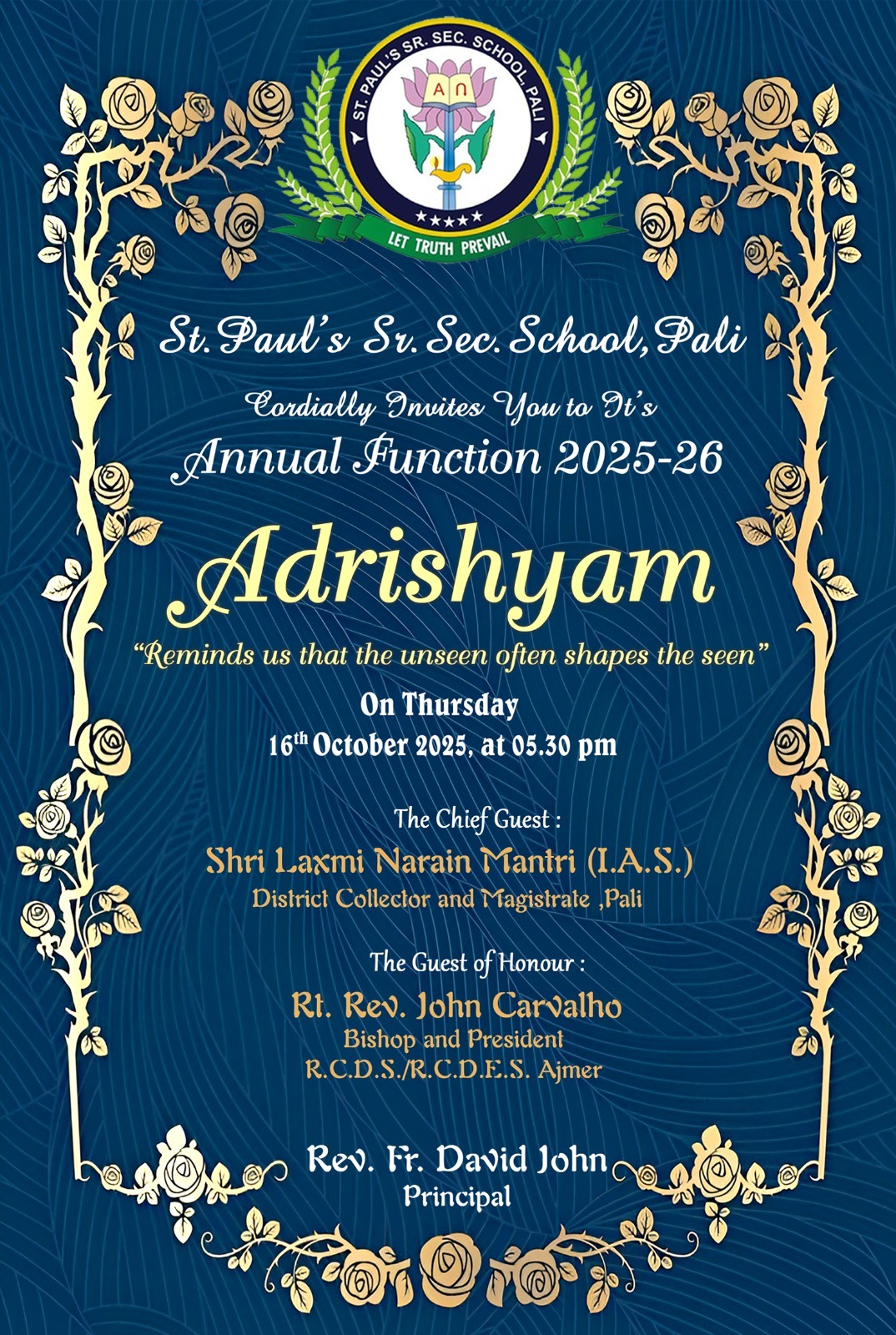 Welcome to the website of St. Paul’s Sr. Sec. School, Pali. As the Principal of the school, I am delighted to share my vision for our school, where we strive to create a vibrant and supportive learning environment for all our students. We look at ourselves as a community of learners, where everyone learns including our teachers, parents and students. Each academic year is a new height scaled, another dream realized with new targets set for the future. Each member of this institution is devoted to turning dreams and aspirations into reality through sincerity and perseverance.