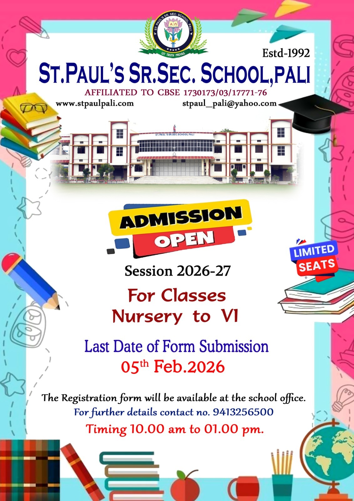 St. Paul's Sr. Sec. School, Pali is named after its Patron St. Paul - an ardent apostle and one of the followers of Christ. It is one of the many Christian minority institutions run by the Priests of the R. C. Diocesan Society, Ajmer. It is co-educational, imparts education through English medium. It is affiliated to the Central Board of Secondary Education, New Delhi.