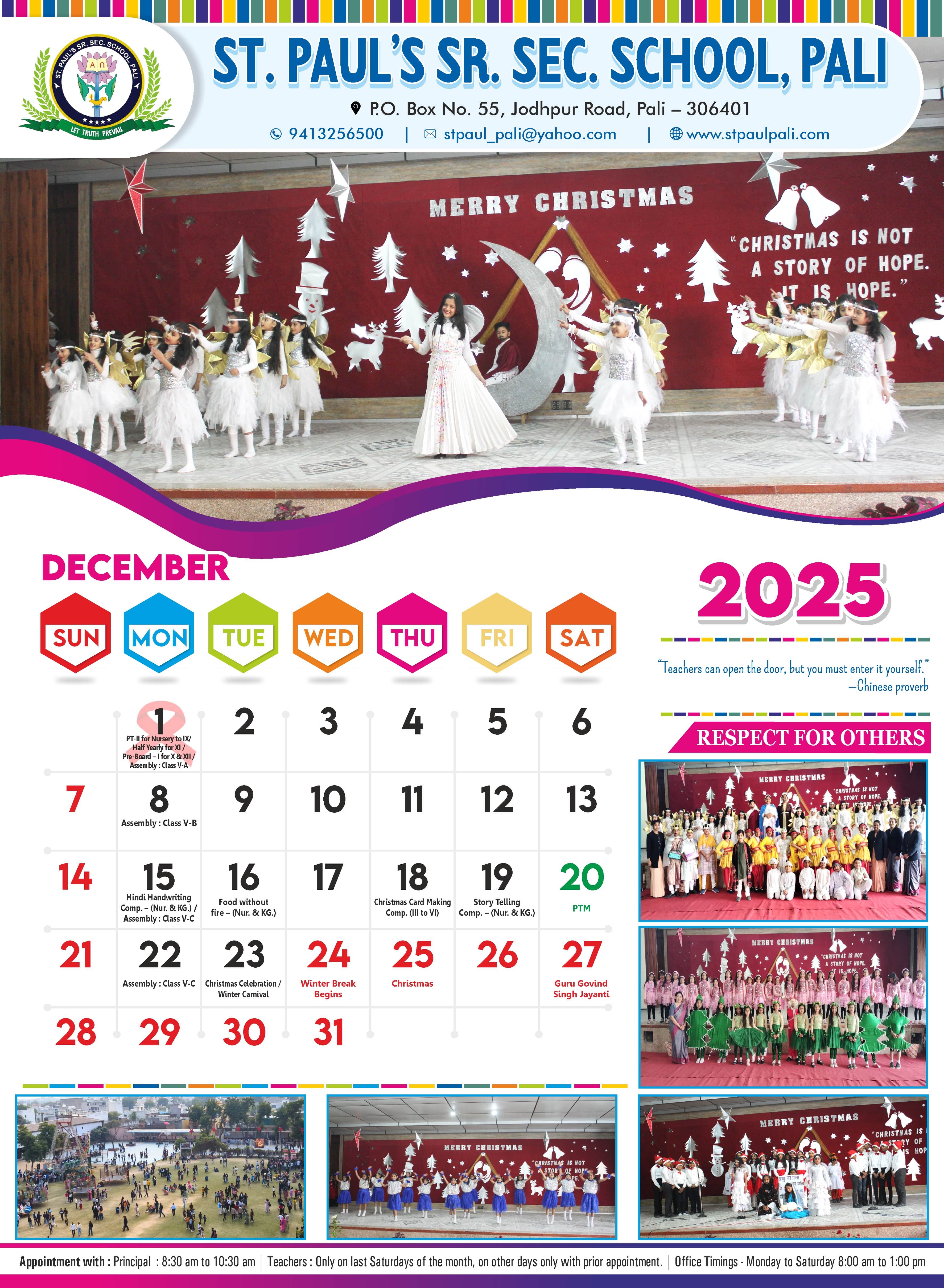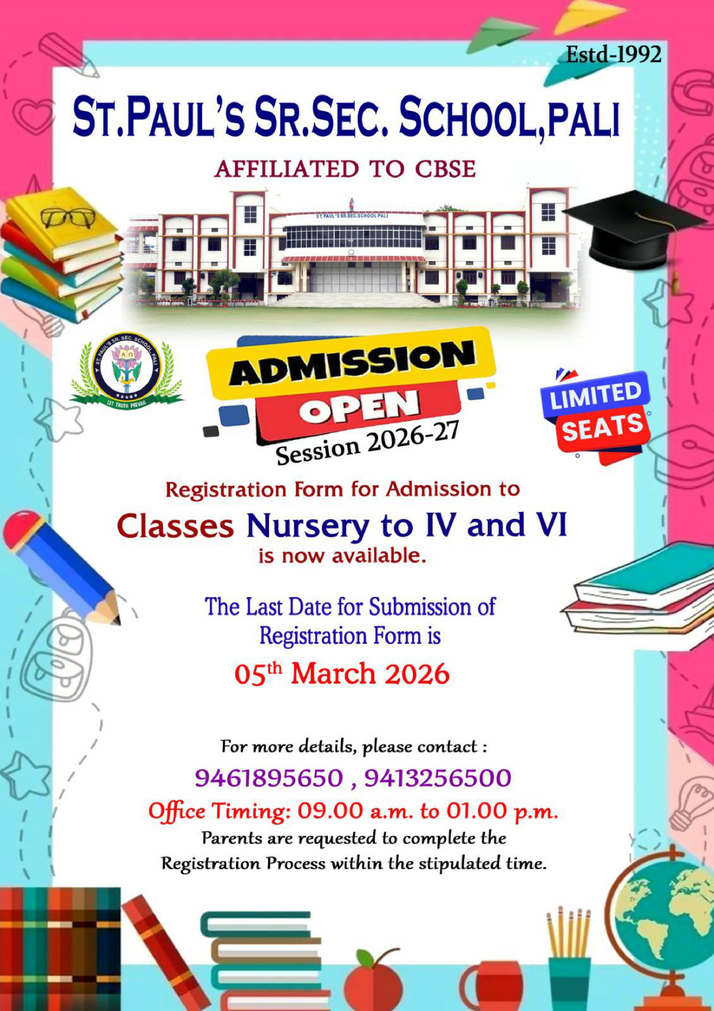 Welcome to the website of St. Paul’s Sr. Sec. School, Pali. As the Principal of the school, I am delighted to share my vision for our school, where we strive to create a vibrant and supportive learning environment for all our students. We look at ourselves as a community of learners, where everyone learns including our teachers, parents and students. Each academic year is a new height scaled, another dream realized with new targets set for the future. Each member of this institution is devoted to turning dreams and aspirations into reality through sincerity and perseverance.
